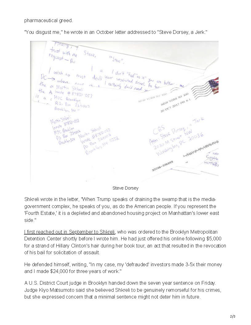 CBS News: I was Martin Shkreli's Prison Pen Pal
